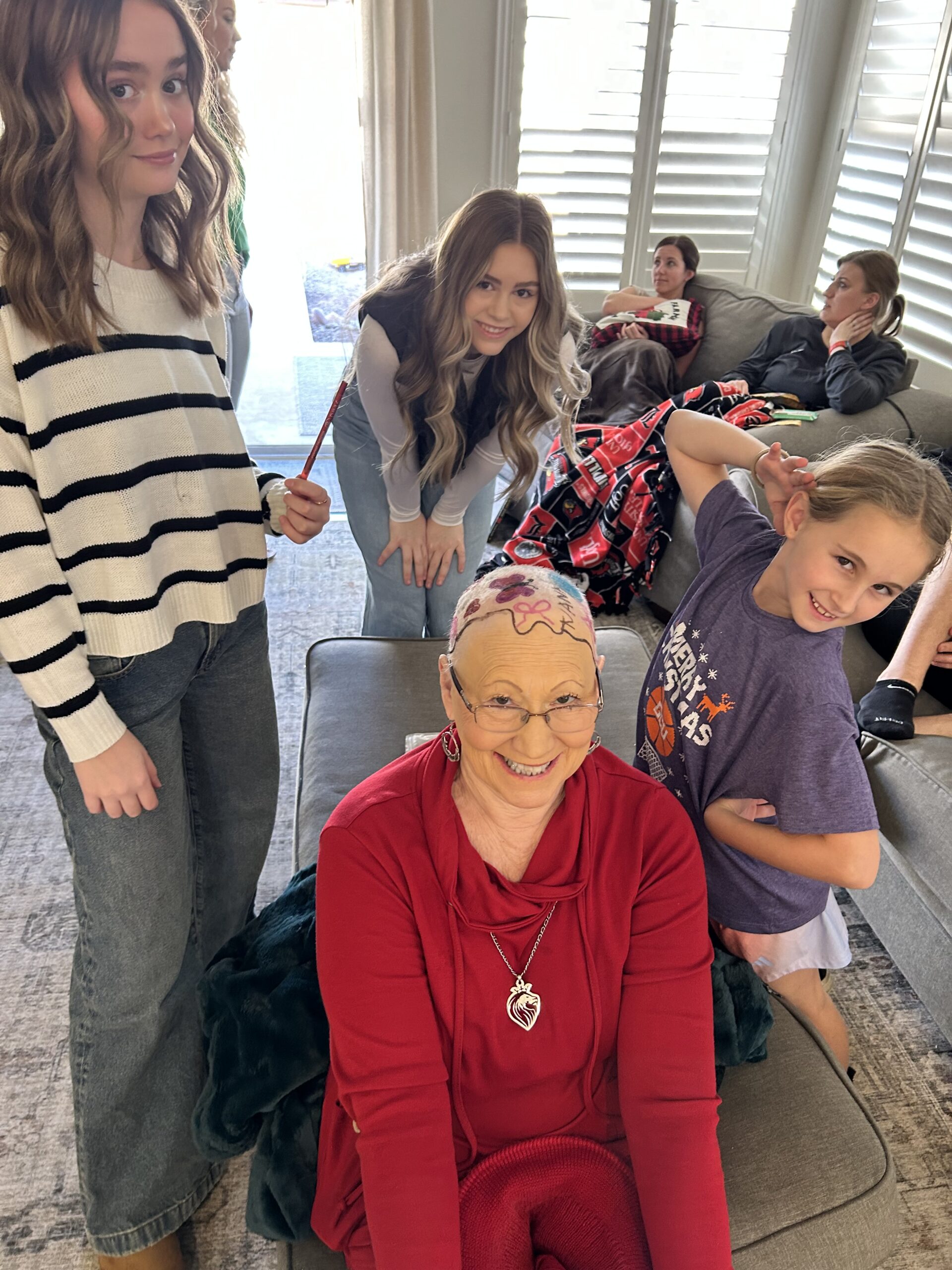 Just a year ago, I had just finished six sessions of chemo, was bald and we were looking for a way to bring JOY into what could be a somber Christmas. Bill and a few of the grandkids rallied to create a wonderful, gleefilled activity- the grandkids took make up pencils and