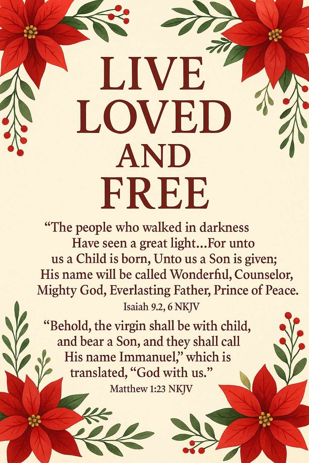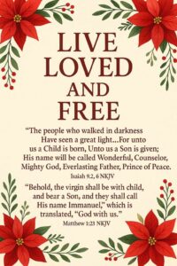 Jesus is Immanuel, God with us. His coming breaks chains of fear, shame, and striving. We are no longer defined by darkness but invited into light—loved completely and freed to live as His sons and daughters.