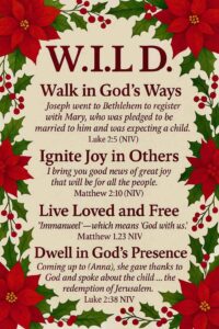 This Christmas, let’s live W.I.L.D.—not recklessly, but rooted in the true story of Jesus. Let’s embrace the Christmas story, and in it, look for someone you can relate to! To be “WILD”, scripture gives us a few solid guidelines: