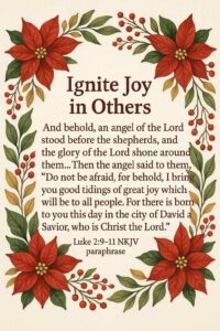 shepherds, reminding us that joy is meant to be shared. Joy doesn’t deny hardship; it declares hope in the middle of it. When we live with Christ-centered joy, we become messengers of good news to a weary world—lighting dark places with heaven’s promise.
