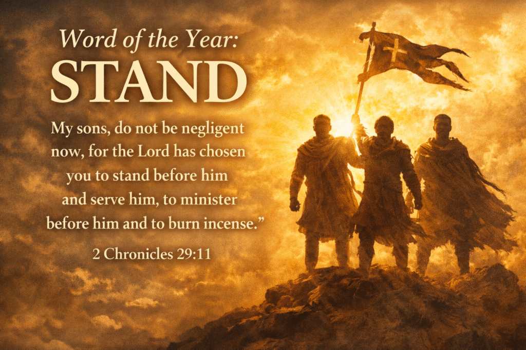 Bill felt God assuring him that he, Bill was chosen, and if he (Bill) would STAND and SERVE, and not neglect the long list of tasks and responsibilities, God would be with him just as he was with the priests serving in the temple. Those working in the temple STOOD the entire time they served, which takes a whole lot of strength, stamina and energy. God was with them then, God would be with Bill in 2026, so Bill’s word of FOCUS is STAND